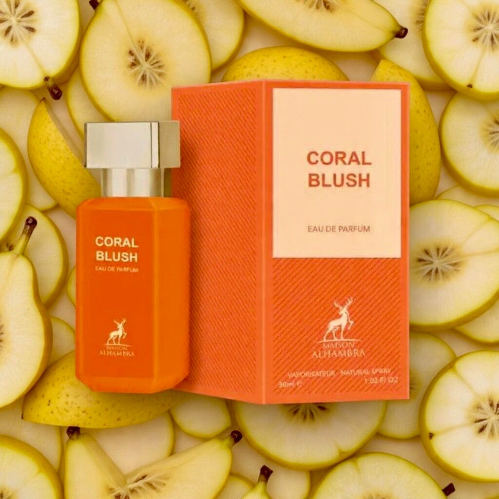 Coral Blush de Maison Alhambra es una fragancia de la familia olfativa Floral Frutal para Hombres y Mujeres. Esta fragrancia es nueva. Coral Blush se lanzó en 2024. Las Notas de Salida son durazno (melocotón), hojas verdes y naranja sanguina; la Nota de Corazón es pachulí; las Notas de Fondo son coñac y miel.